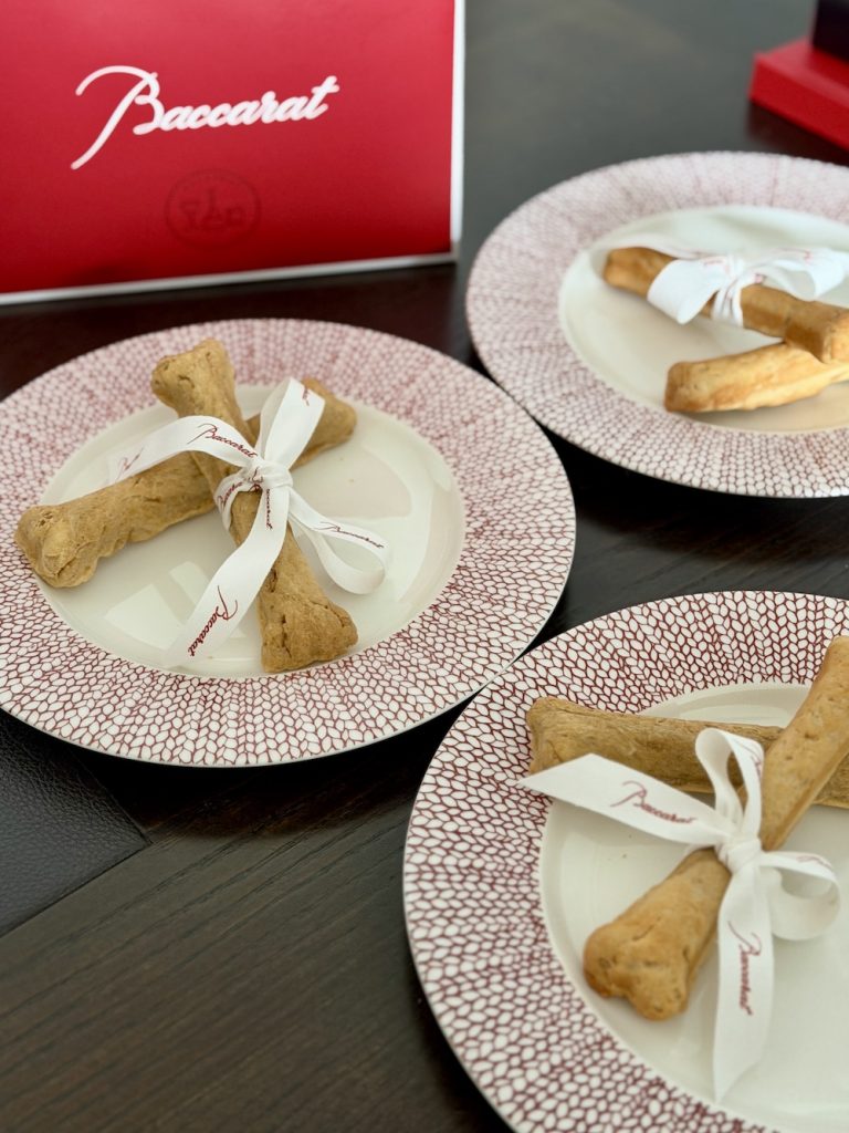 Shamir’s brand was built on the idea that the bond between humans and their dogs deserves the same level of craftsmanship as any fine jewelry collection. Each piece is handmade in New York using 18K gold and an array of natural and lab-grown D-color VVS diamonds, selected for their exceptional clarity and brilliance. The aesthetic leans refined, though never without a sense of humor—diamond-studded paw charms, sculptural silhouettes, and a signature ruby accent that nods to Baccarat’s heritage without feeling overly formal. Select designs feature exclusive charms inspired by the hotel itself, available only to guests who commission pieces through the experience.